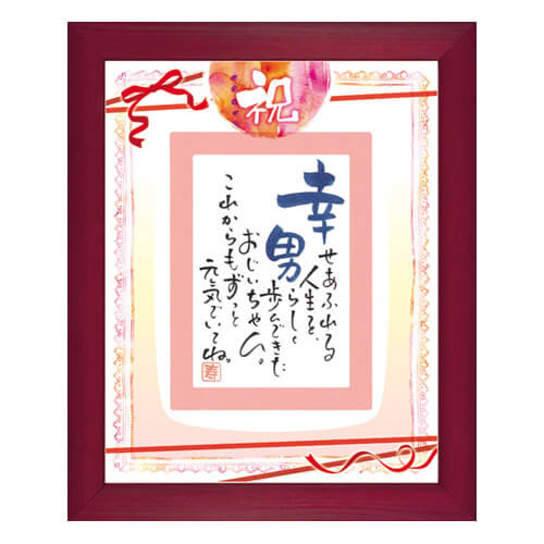 「祝」の文字にさりげなく飾られたリボン&レース。ポエムを引き立てるしっとりした雰囲気は、還暦・喜寿・米寿などご長寿のお祝いなどにも人気です。