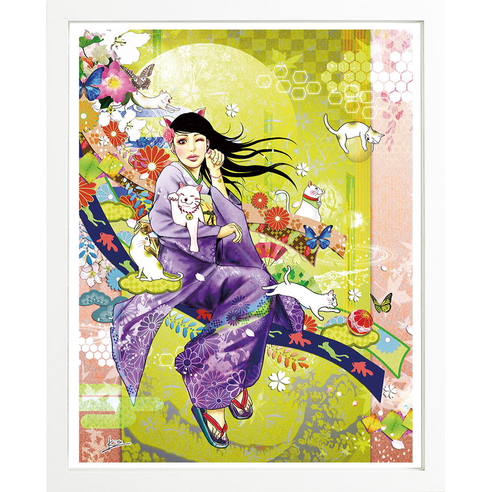 イラストレーターKisの幸福を呼ぶ招き猫をテーマに現代的な和を描いた作品です。