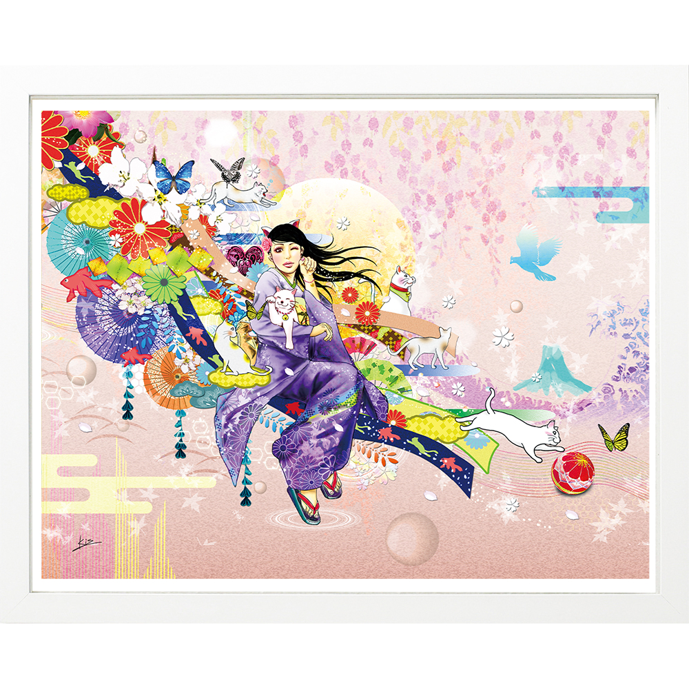 イラストレーターKisの幸福を呼ぶ招き猫をテーマに現代的な和を描いた作品です。