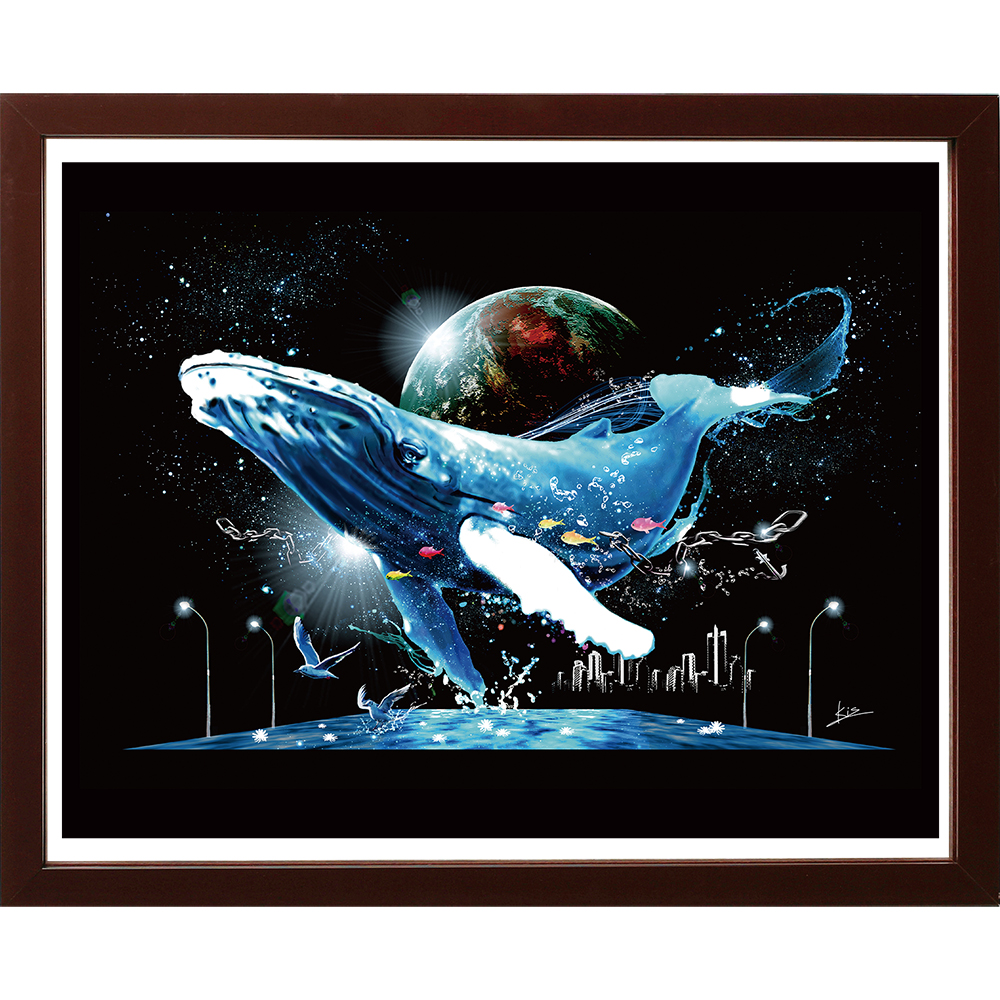 イラストレーターKisの深海と宇宙をテーマに広い世界で優雅に舞う鯨を描いた作品です。