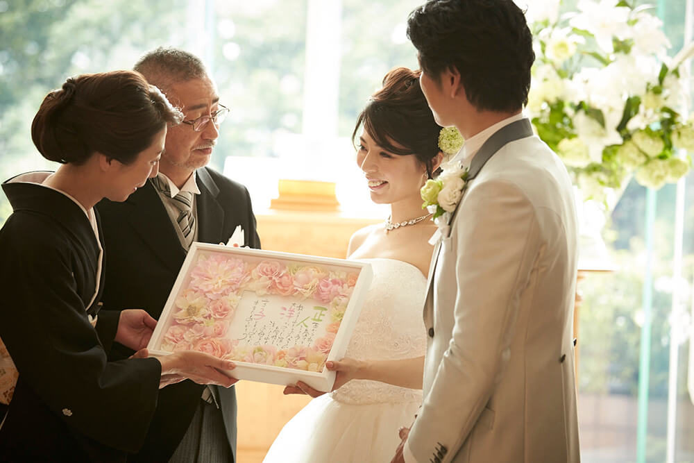 ご両親への記念品贈呈のシーンは、まさに披露宴のクライマックス。