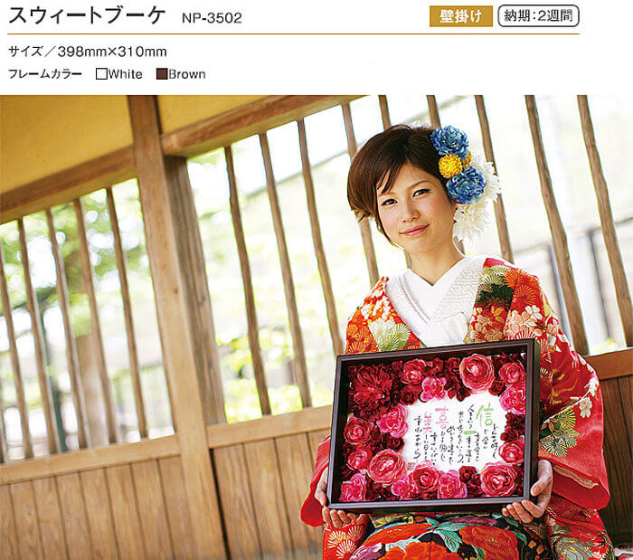 ウェルカムボードやご友人へのお祝い、ご両親へ花束代わりに贈る方が多いです。