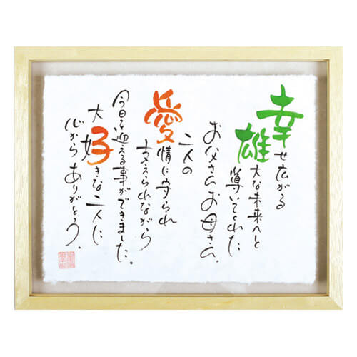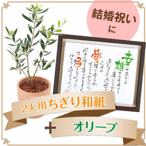 夫婦の契り(ちぎり)をちぎり和紙で表現したポエムに、幸せを呼ぶオリーブの木を添えて。