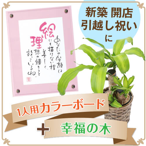 名前入りの詩が評判のネームインポエムに、家においておくと良い事があると言われている幸福の木を添えて。