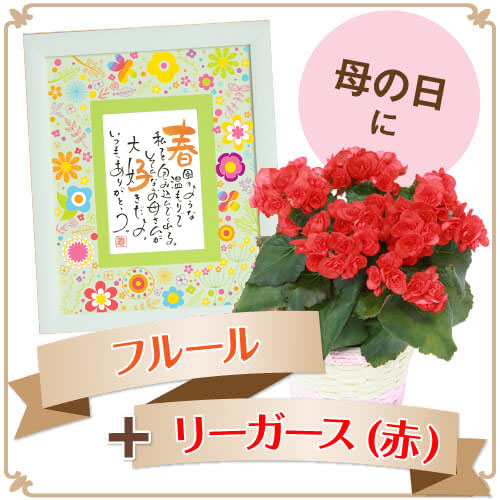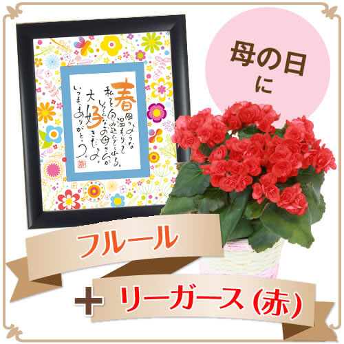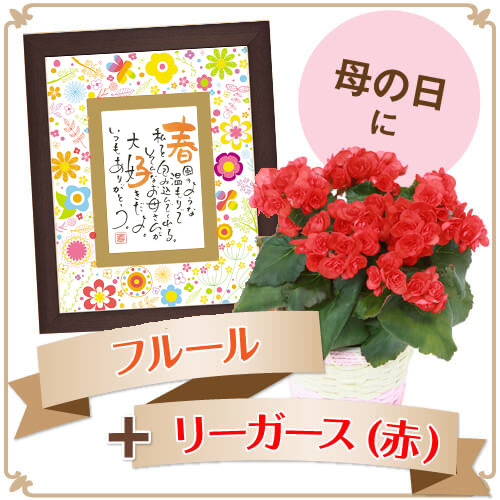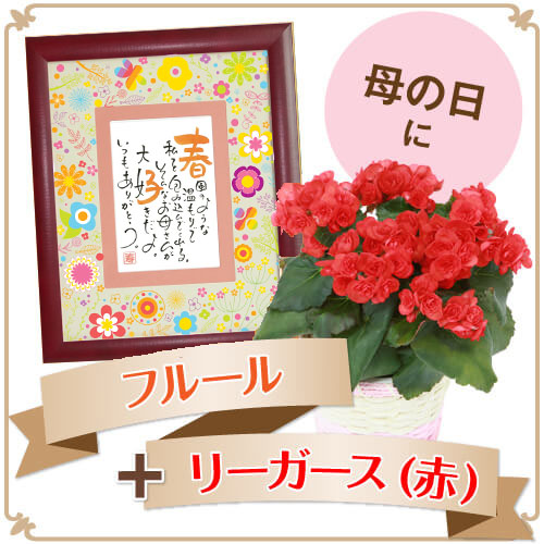 お母さんのお名前で作るポエムに、愛らしい赤色のリーガースのお花を添えて。