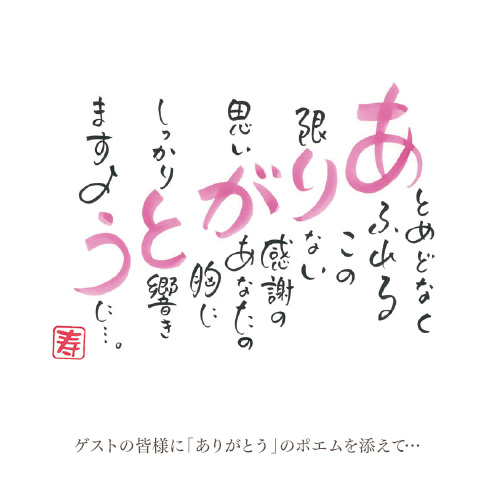 また、新郎・新婦様の名前入りポエムを結婚報告ハガキに印刷したりアイディア次第で様々なシーンでご利用いただけます。