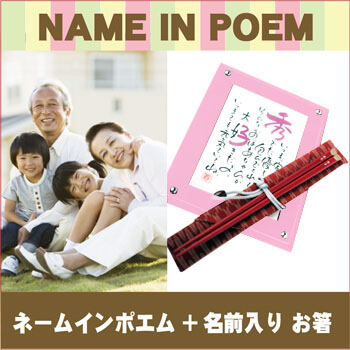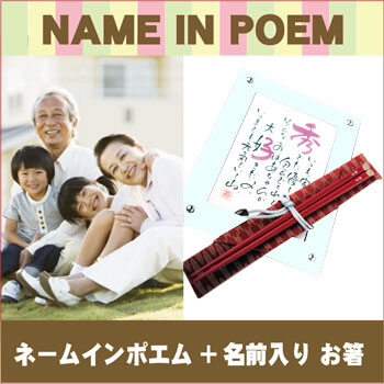 名前が入った特別なお箸(お祝い寿箸)&ネームインポエムのセット商品。