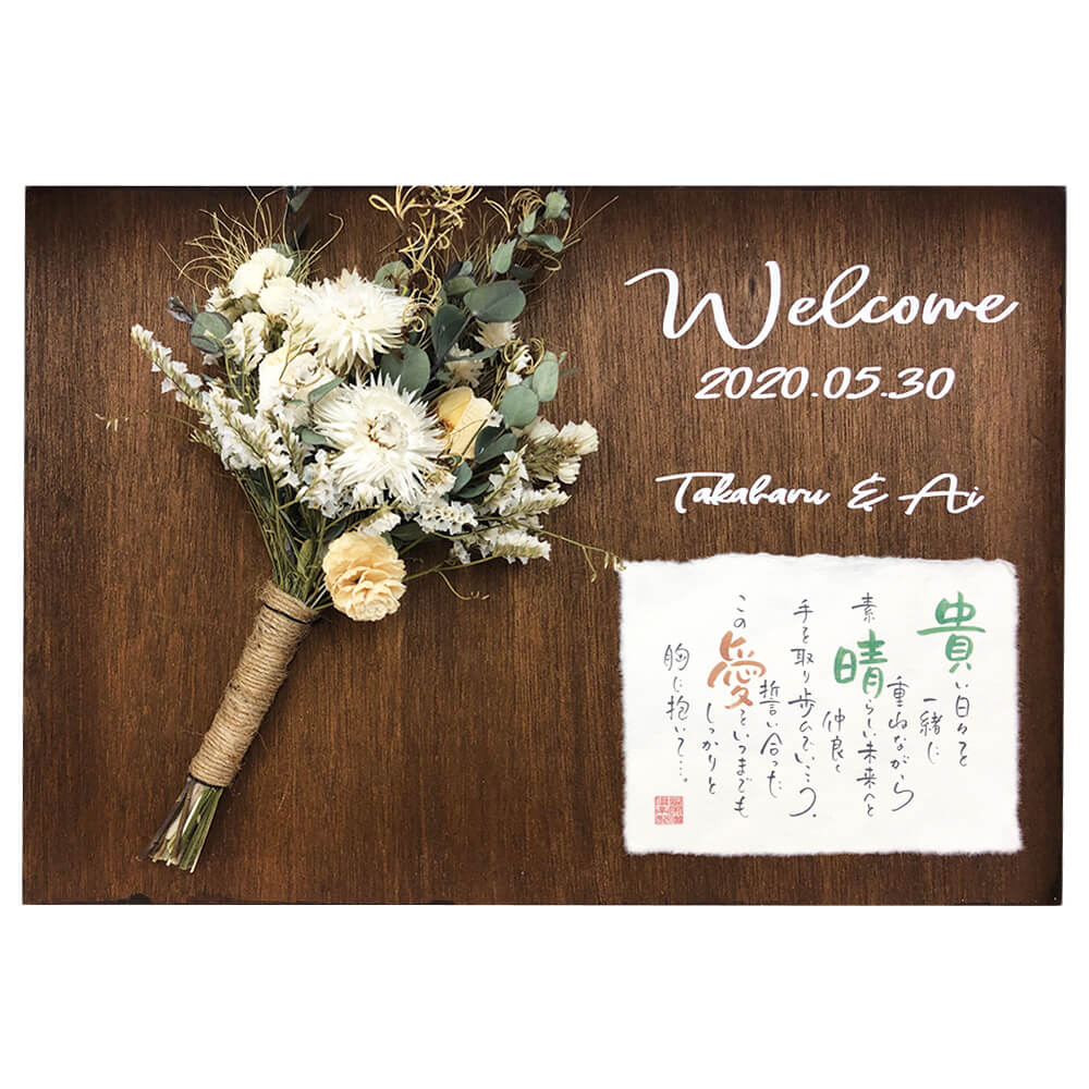 ネームインポエムにドライフラワーのブーケを添えた新商品。