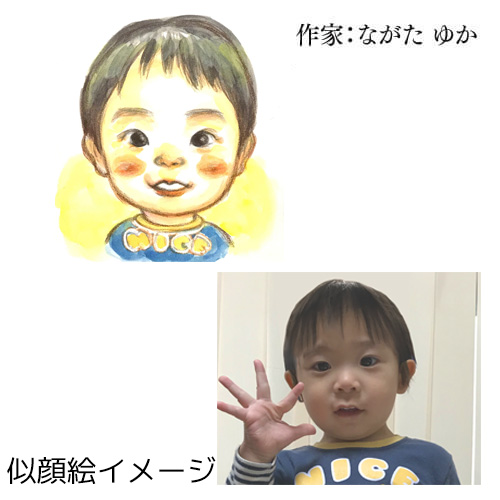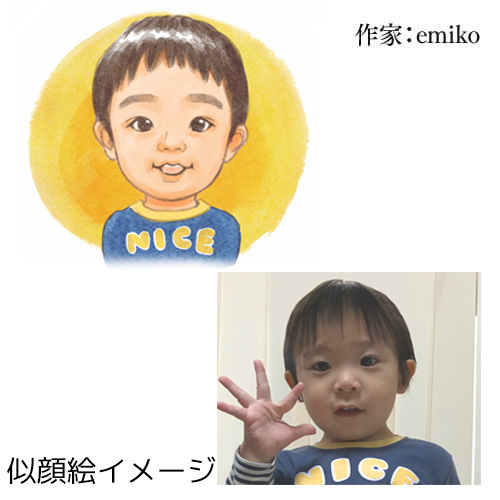 名入りの詩に似顔絵を添えたネームインポエムのイラストタイプ(1人用)。お好みの似顔絵作家からお選びください。