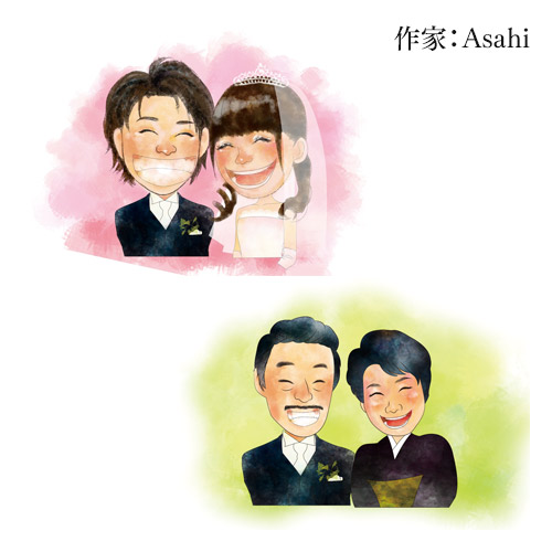 お好みのイラストタッチを4人のそれぞれ4タイプより選べます。