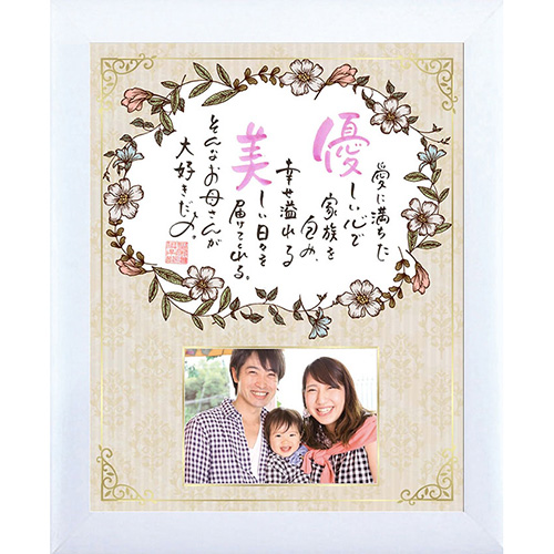 お母さんの名前詩を入れて、母の日ギフトに。お好きな写真を入れることができるので、例えば家族旅行の写真など、思い出の一枚を添えて渡すのも素敵ですね。