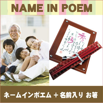 <名前が入った特別なお箸(お祝い寿箸)&ネームインポエムのセット>