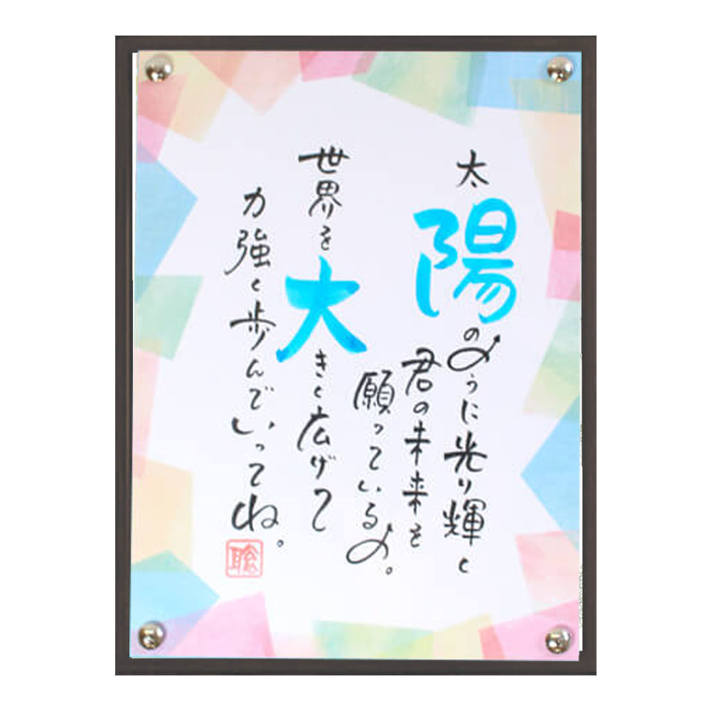 飾りやすいサイズ感とお手軽な価格で作れる、世界に二つとない名前の作品には、誕生日プレゼントやちょっとした贈り物にも最適。手軽に贈れる、けれどもいつもと違う、そんな特別な贈り物に。