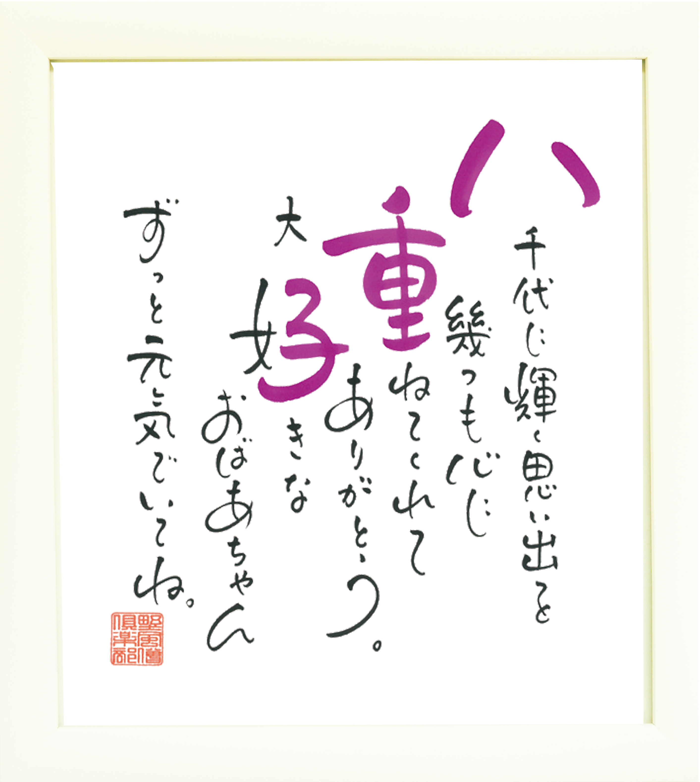 大切な人のお名前を入れて綴る詩で、感謝と慰労の気持ちを伝えてみませんか。フレームの種類は贈る相手を選ばない七色からセレクト!プレゼントする相手のことを考えながら選んでね。