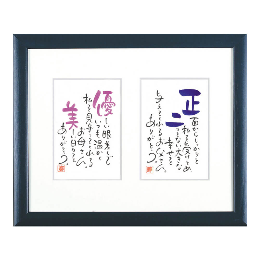 ご夫婦、兄弟姉妹、祖父母など 2人の名前がひとつの額に入ります。 記念日や日頃の感謝、それぞれに伝えたいことをお書きします。