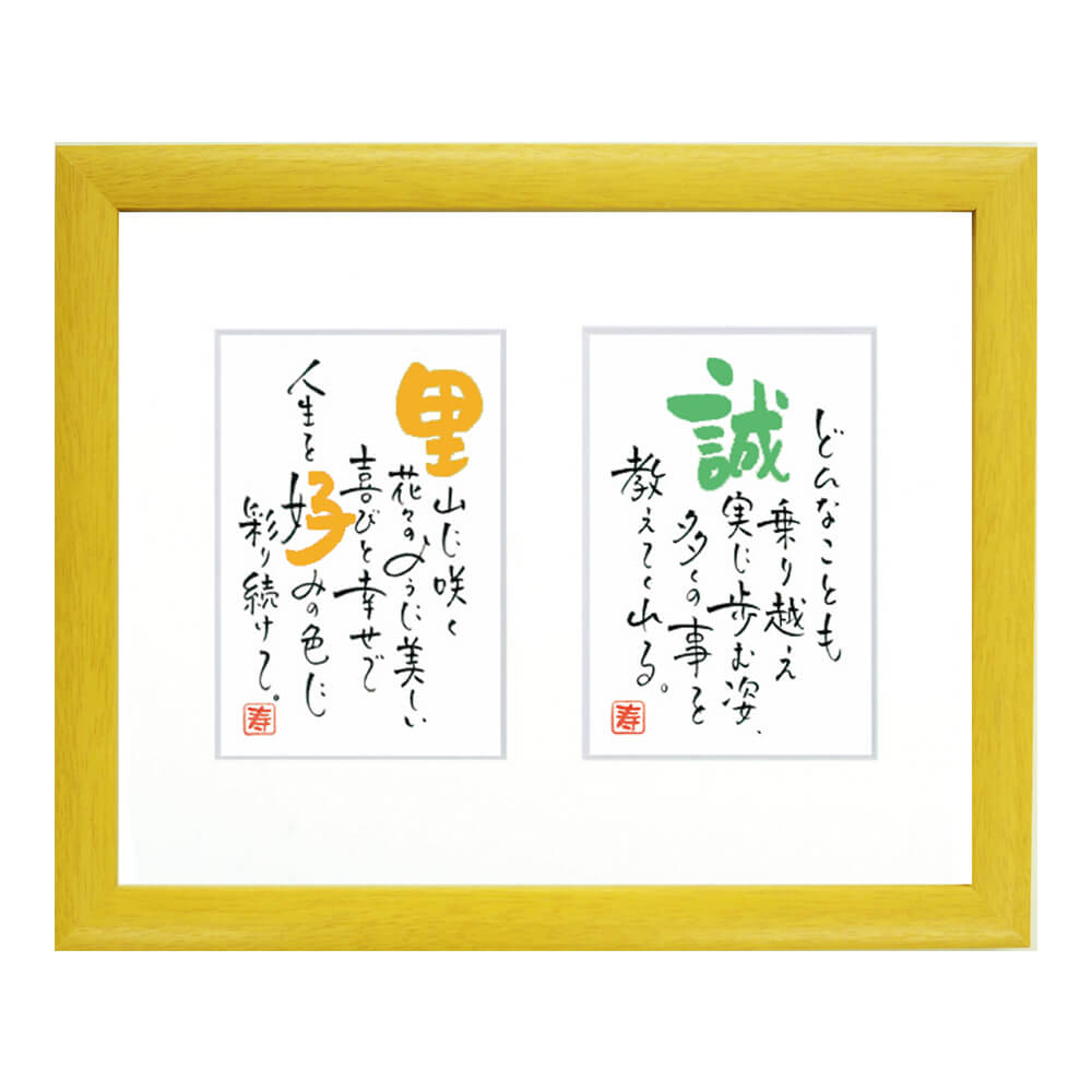 ご夫婦、兄弟姉妹、祖父母など 2人の名前がひとつの額に入ります。 記念日や日頃の感謝、それぞれに伝えたいことをお書きします。