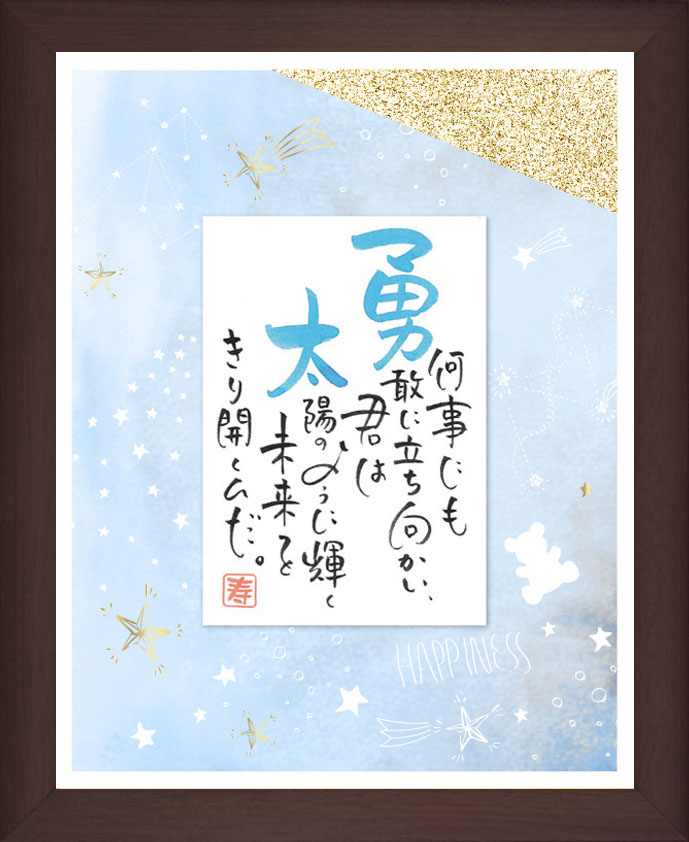 可愛い赤ちゃんへ”希望に満ちた未来へと歩んでいけるように・・・”パパ・ママの願いのこもった大切なお名前を織り込んで一つひとつ手書きで作り上げていきます。お子様の誕生のお祝い記念品として一生の宝物に・・・また、友達のお子様へ出産祝いギフトとして、お友達の誕生日祝い贈り物にも人気です。